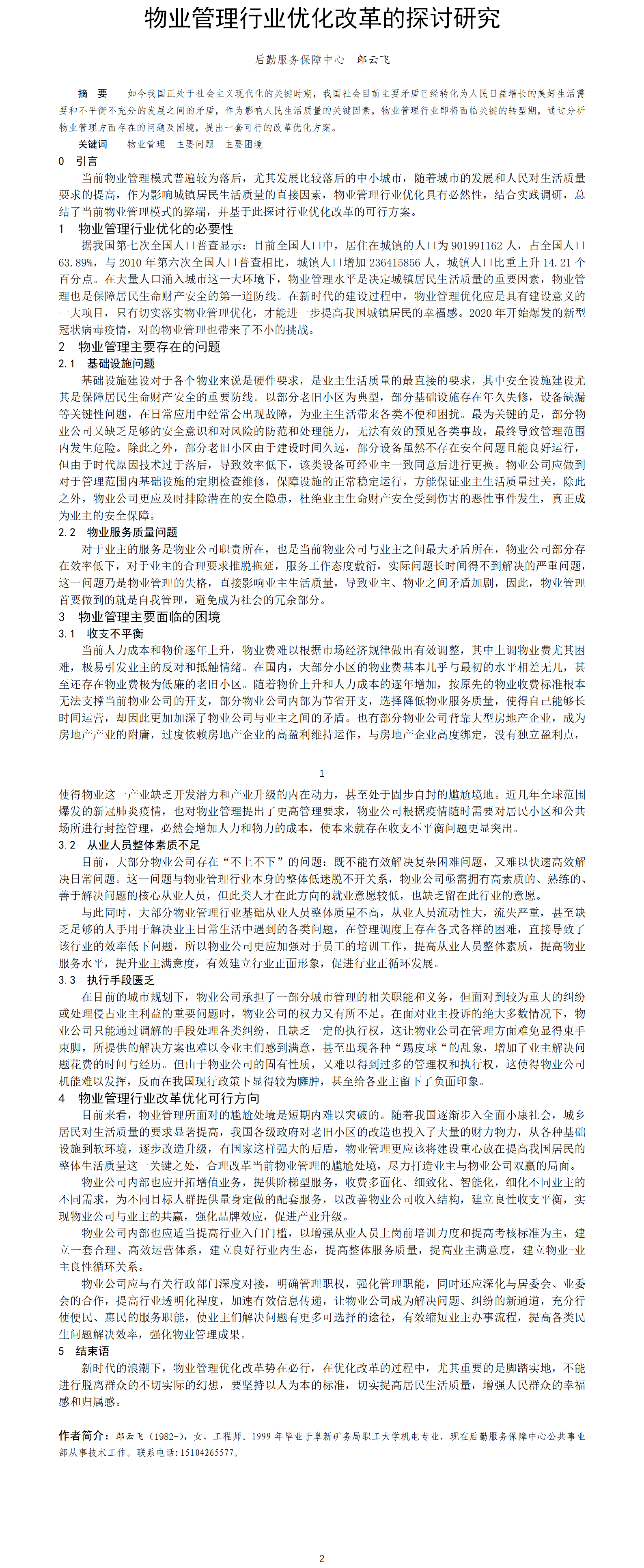 第58屆等級(jí)獎(jiǎng)?wù)撐?--物業(yè)管理行業(yè)優(yōu)化改革的研究
