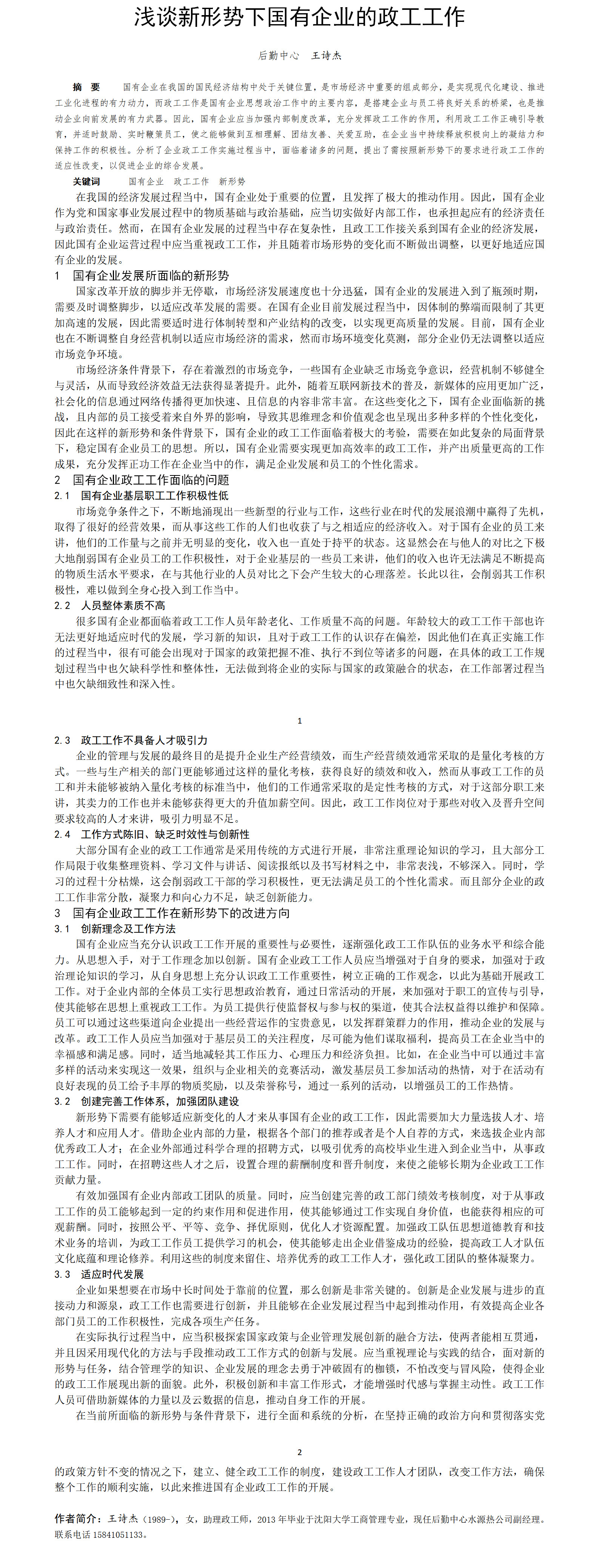第58屆等級(jí)獎(jiǎng)?wù)撐?--淺談新形勢(shì)下國(guó)有企業(yè)的政工工作
