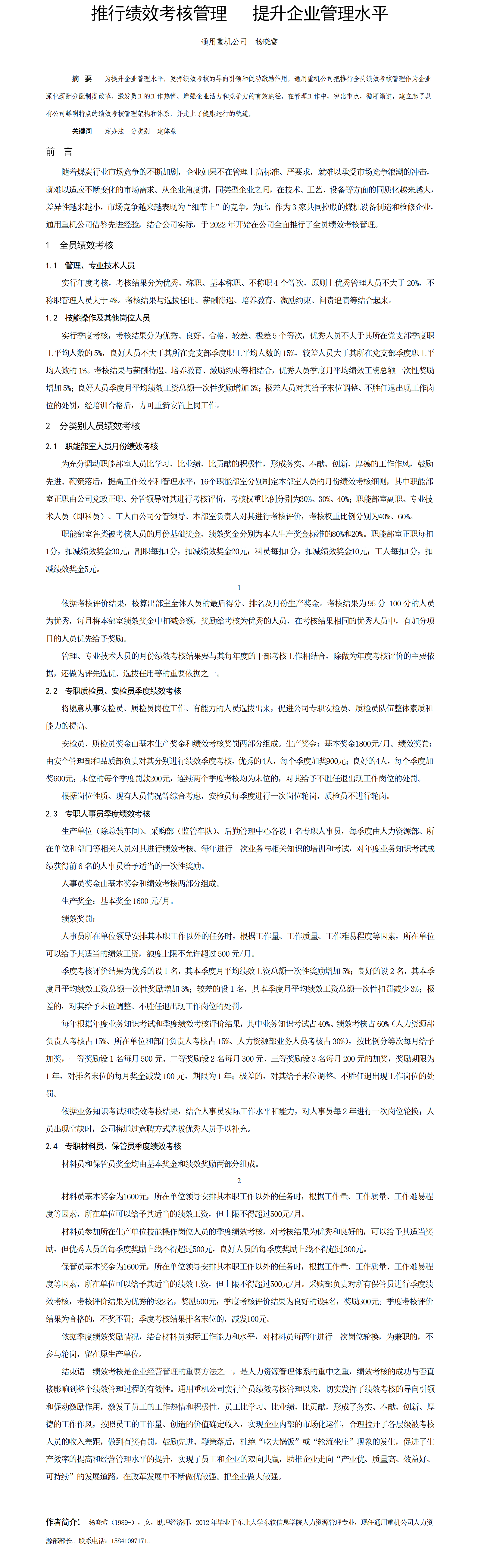 第58屆等級獎?wù)撐?--推行績效考核管理 提升企業(yè)管理水平