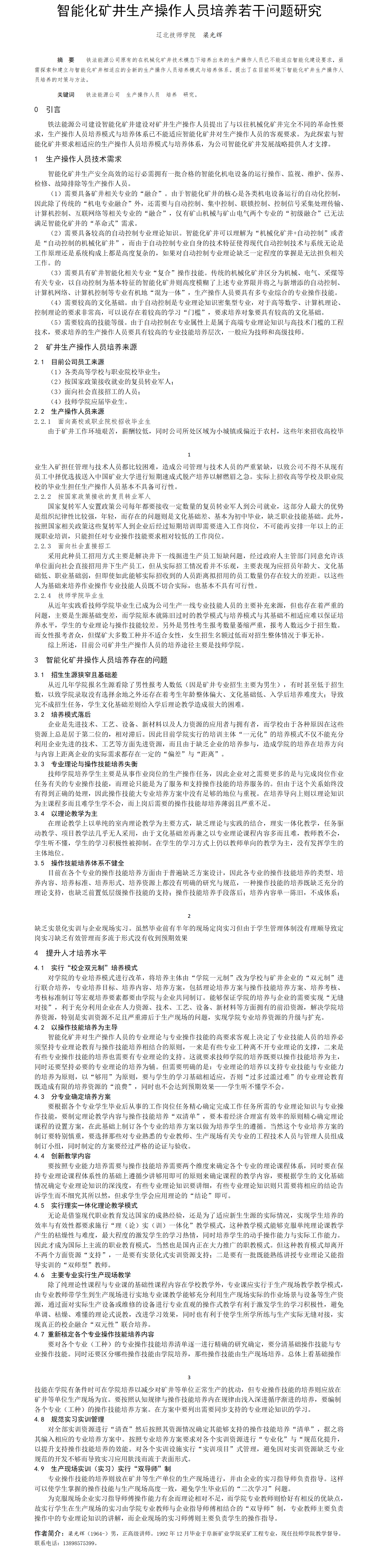 第58屆等級獎?wù)撐?--智能化礦井生產(chǎn)操作人員培養(yǎng)研究
