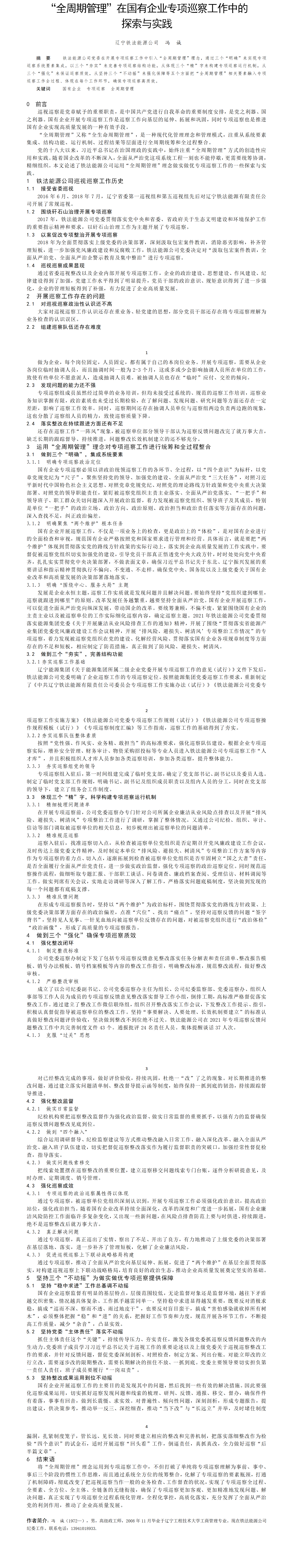 第58屆等級(jí)獎(jiǎng)?wù)撐?--“全周期管理”在國有企業(yè)專項(xiàng)巡察工作中的探索與實(shí)踐