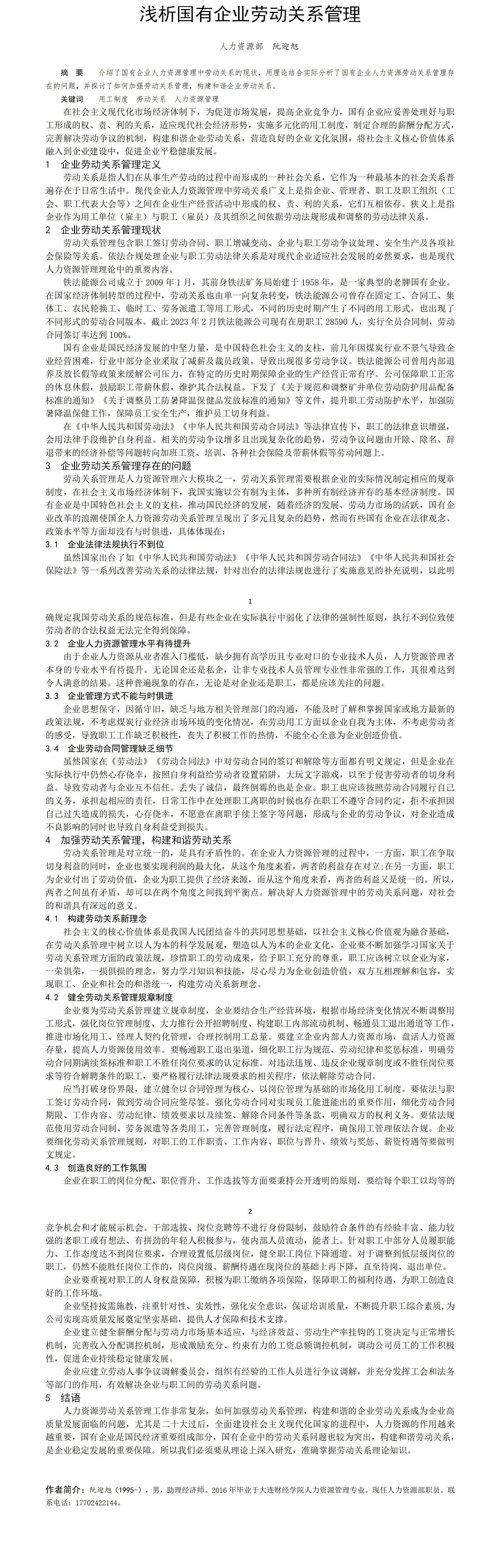 第58屆等級獎(jiǎng)?wù)撐?--淺析國有企業(yè)勞動關(guān)系管理