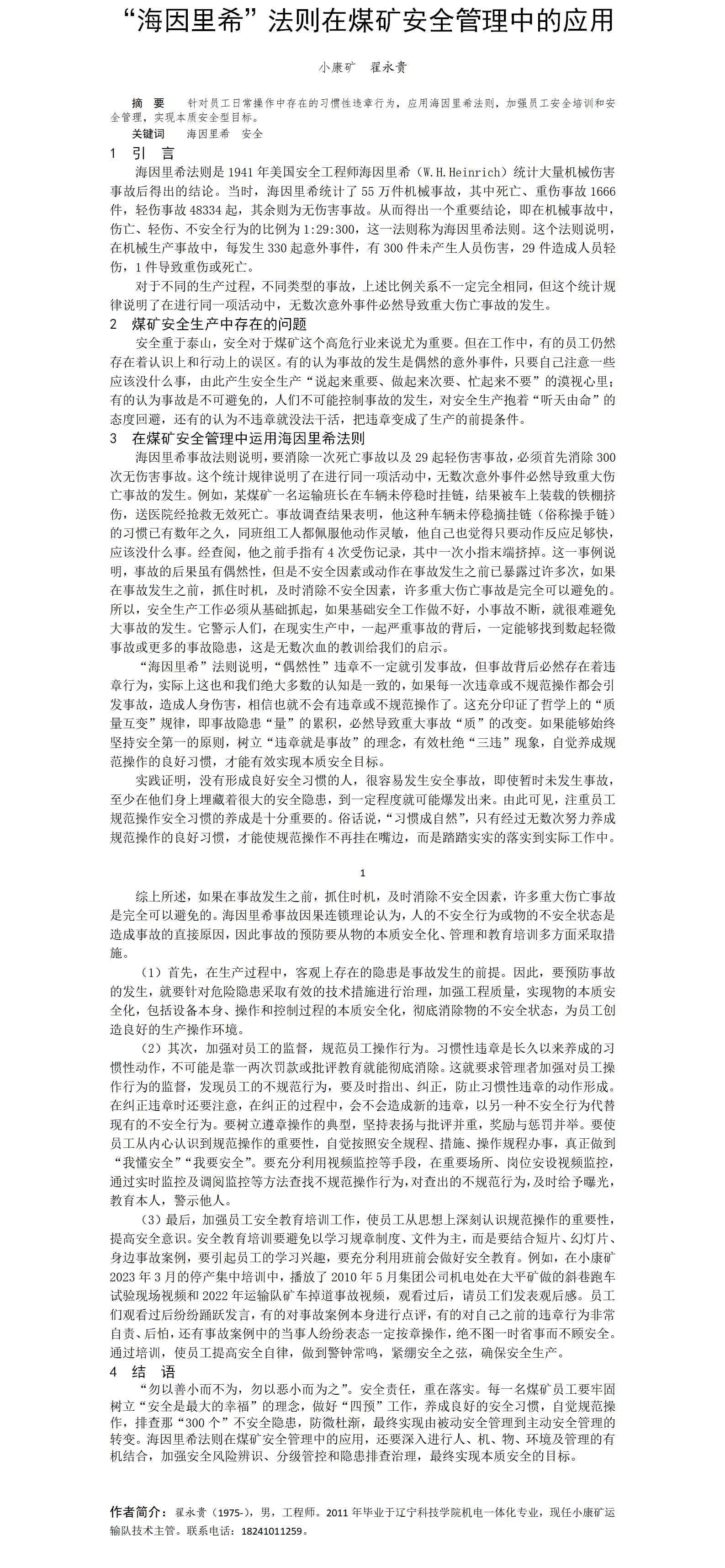 第58屆等級(jí)獎(jiǎng)?wù)撐?--“海因里希”法則在煤礦安全管理中的應(yīng)用