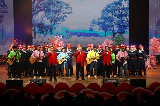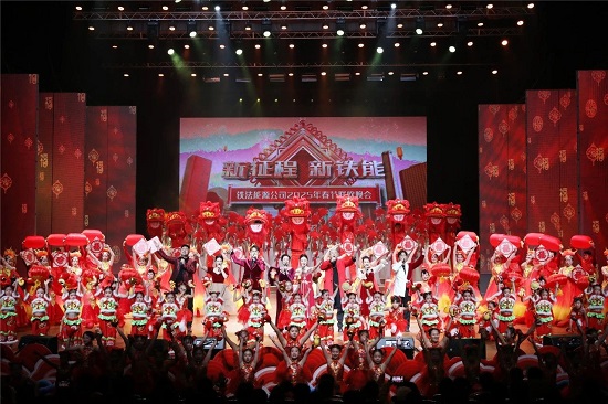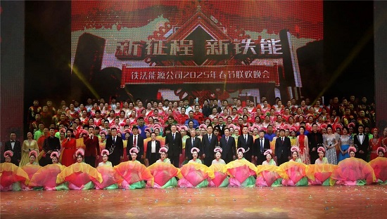 演出在歌舞《追夢·鐵能啟航》激昂的合唱聲中落下帷幕。柳春、邵柏庫等公司領導走上舞臺,柳春代表公司領導班子向奮戰(zhàn)在礦區(qū)各條戰(zhàn)線上的全體職工和長期以來一直默默支持公司各項工作的職工家屬致以新春的祝福,祝福大家新春快樂、闔家幸福、順心如意、和和美美,祝愿鐵法能源公司基業(yè)長青、企泰民安。致辭結(jié)束后,公司領導同全體演職人員合影留念。