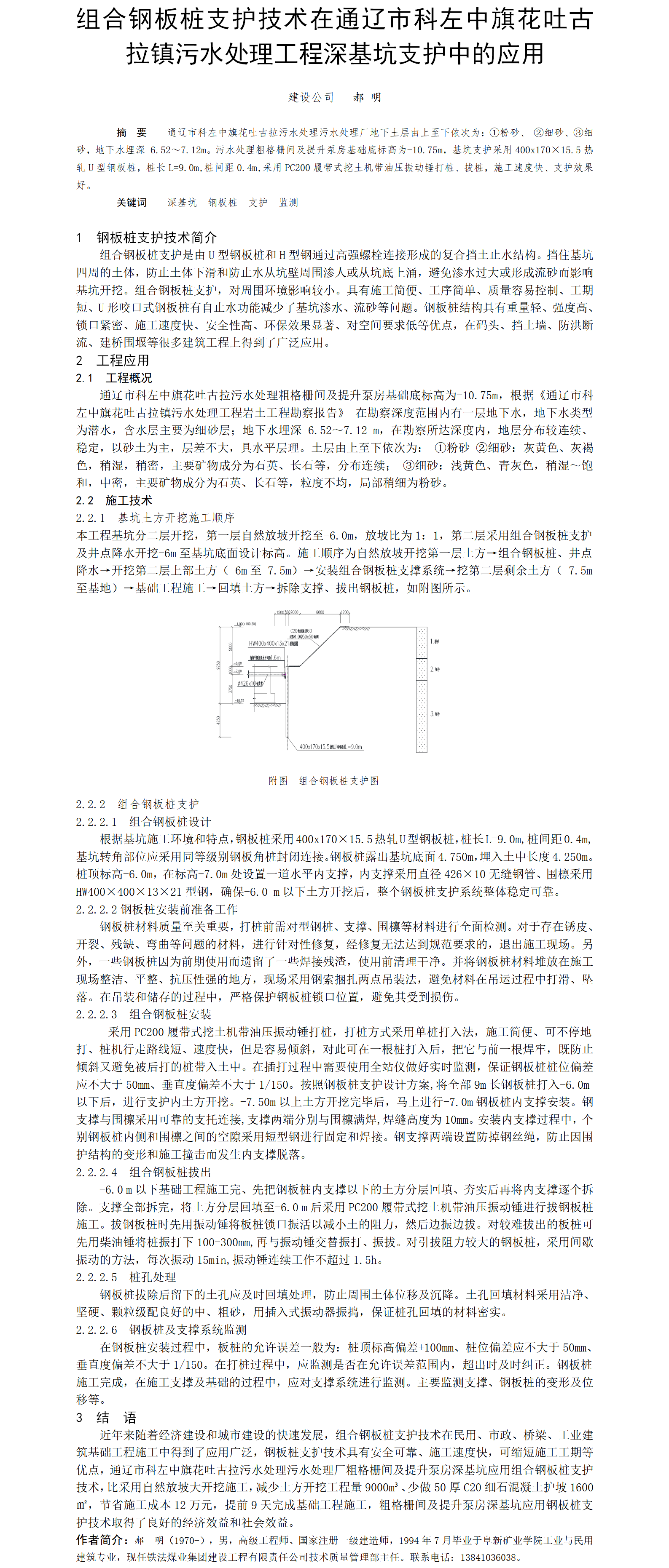第59屆等級(jí)獎(jiǎng)?wù)撐?--組合鋼板樁支護(hù)技術(shù)在通遼市科左中旗花吐古拉污水處理廠工程基坑開挖中的應(yīng)用