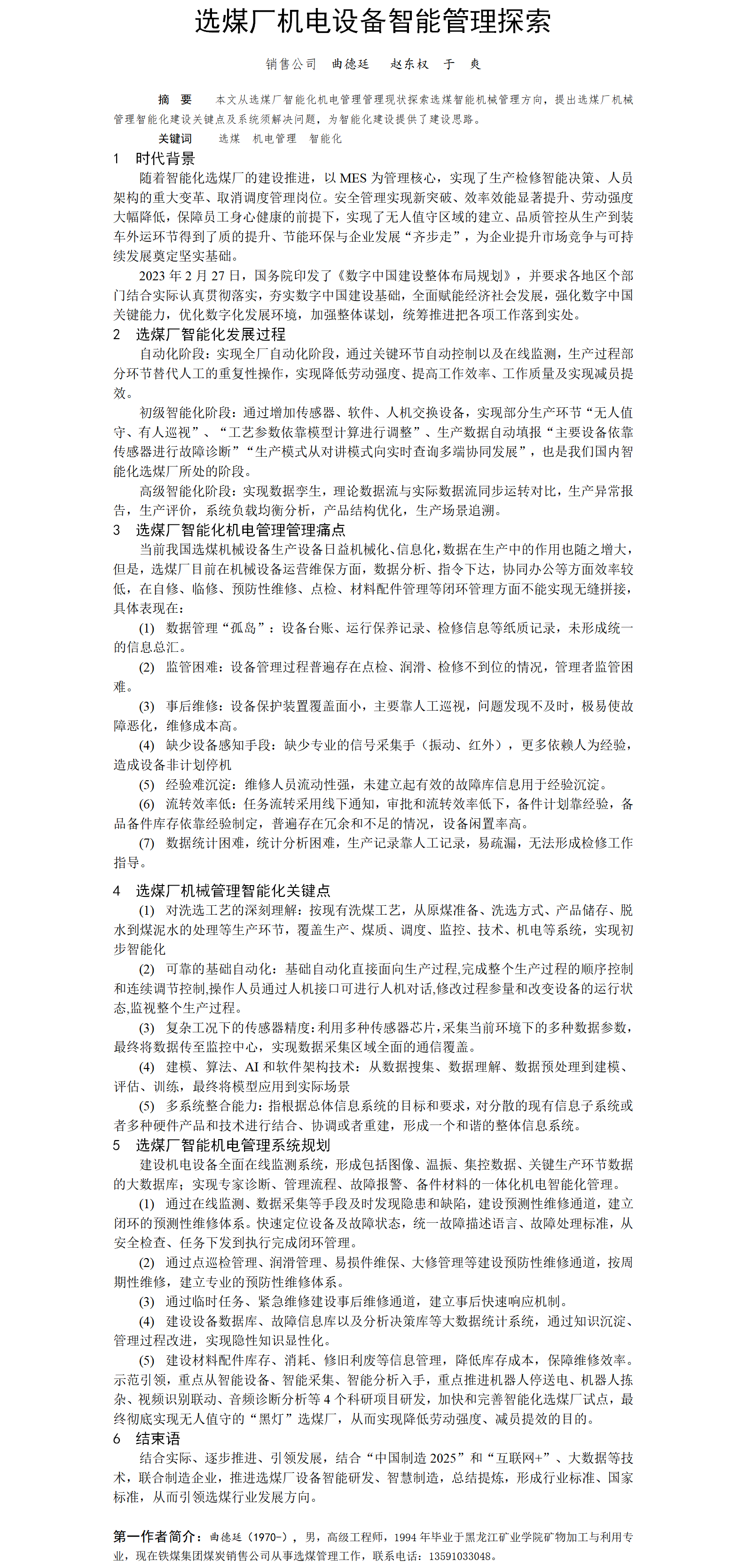 第59屆等級獎論文---選煤廠機電設備智能管理探索