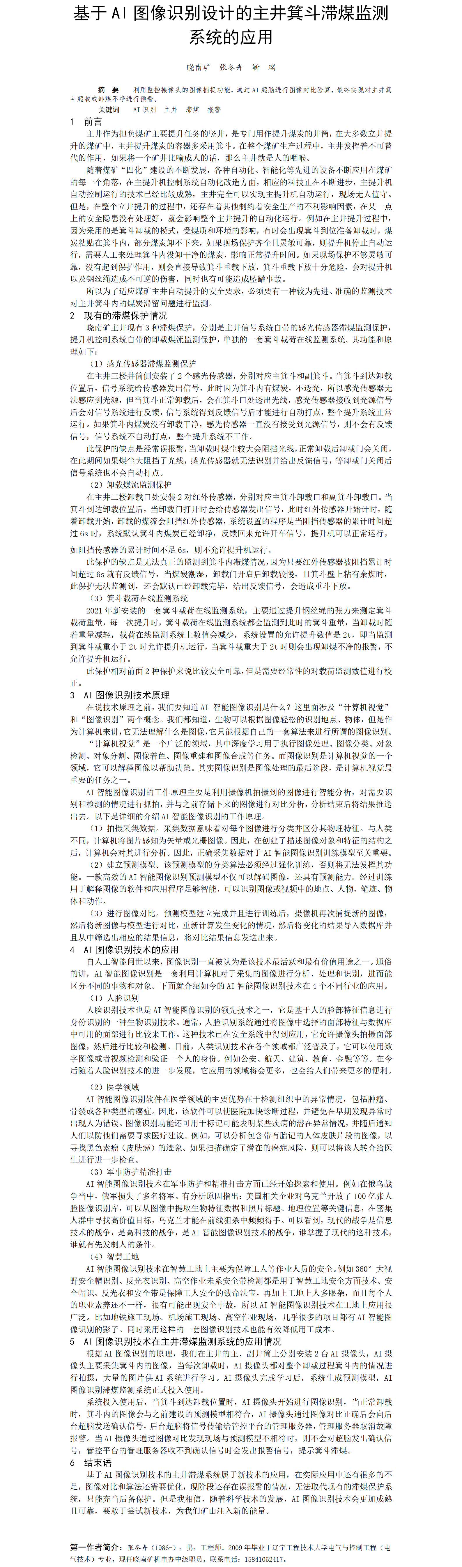 第60屆等級獎?wù)撐?-基于AI圖像識別設(shè)計的主井箕斗滯煤監(jiān)測系統(tǒng)的應(yīng)用