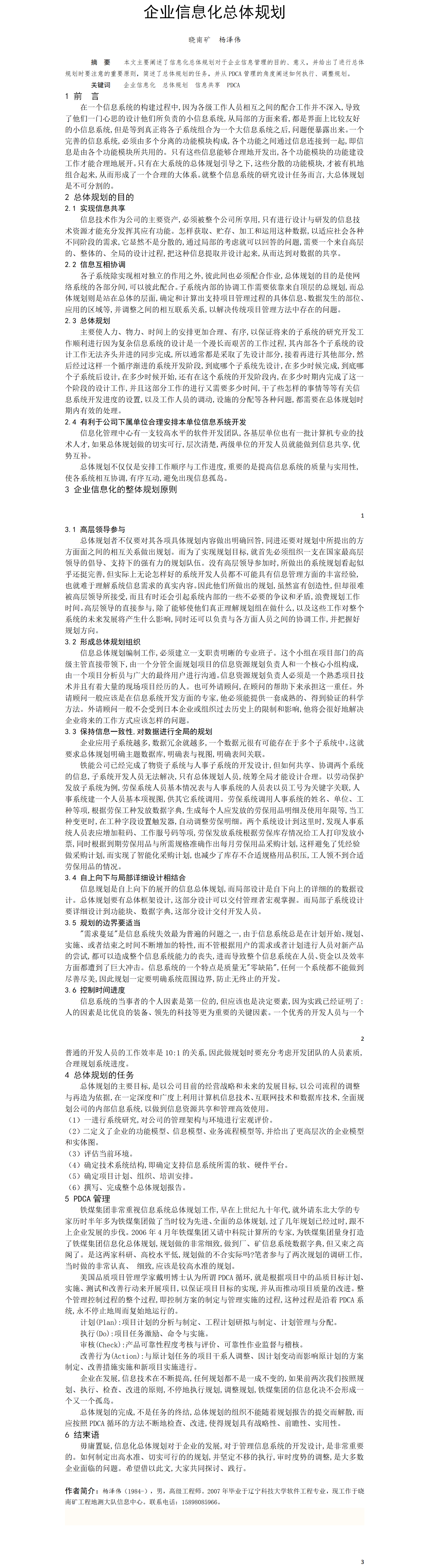 第60屆等級(jí)獎(jiǎng)?wù)撐?--企業(yè)信息化總體規(guī)劃