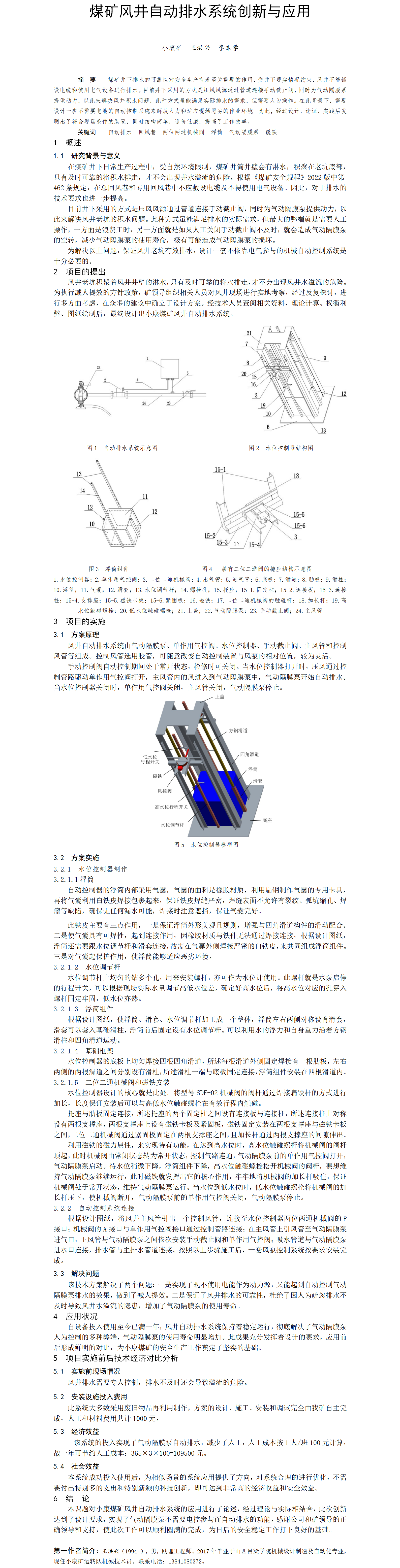 第60屆等級(jí)獎(jiǎng)?wù)撐?--煤礦風(fēng)井自動(dòng)排水系統(tǒng)創(chuàng)新與應(yīng)用