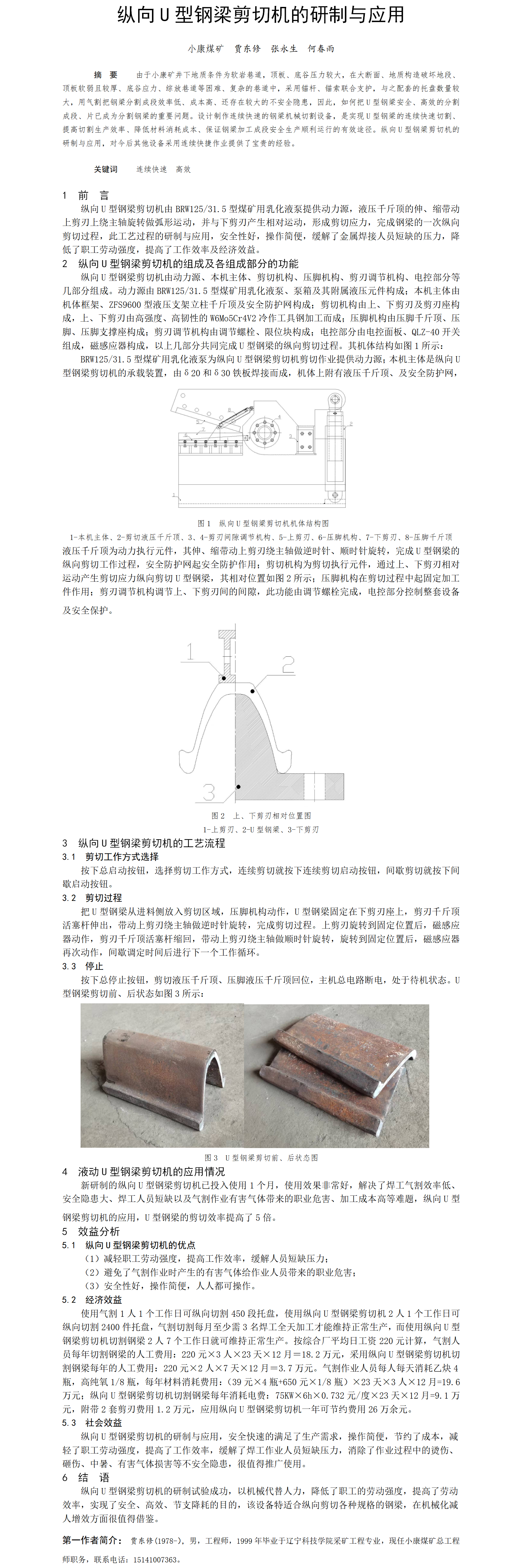 第60屆等級獎(jiǎng)?wù)撐?--縱向U型鋼梁剪切機(jī)的研制與應(yīng)用