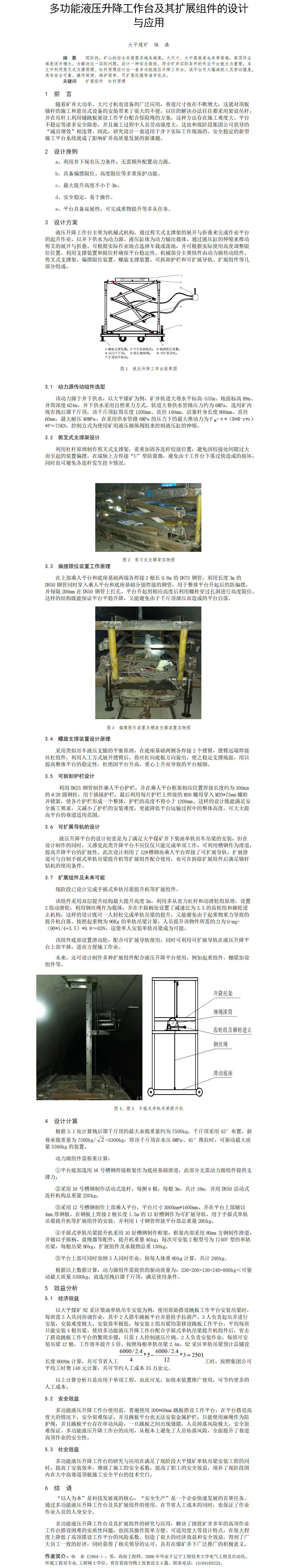 第60屆等級獎論文---多功能液壓升降工作臺及其擴展組件的設計與應用