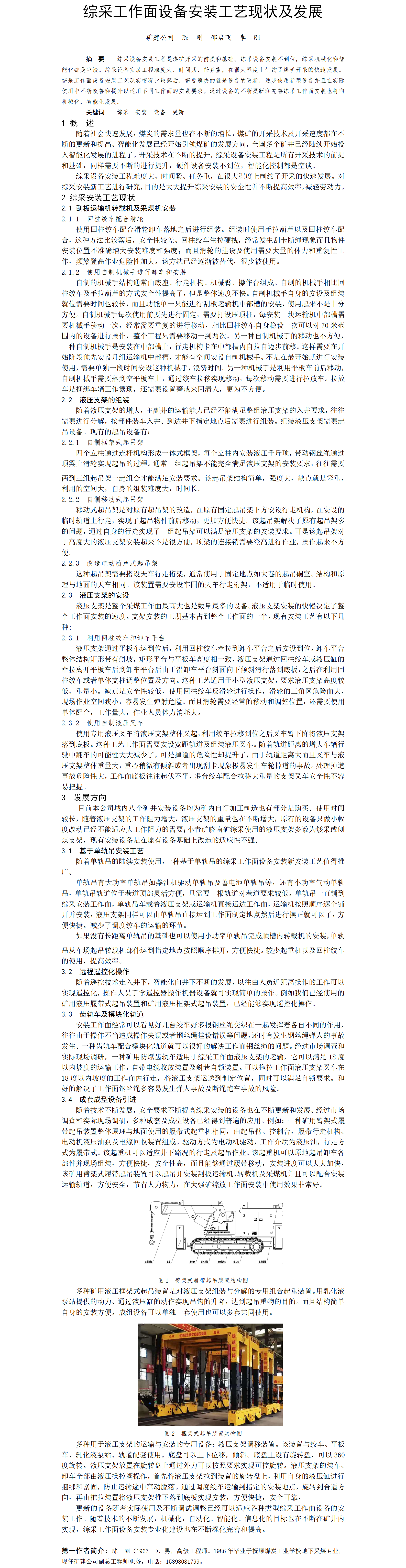第60屆等級獎(jiǎng)?wù)撐?--綜采工作面設(shè)備安裝工藝現(xiàn)狀及發(fā)展