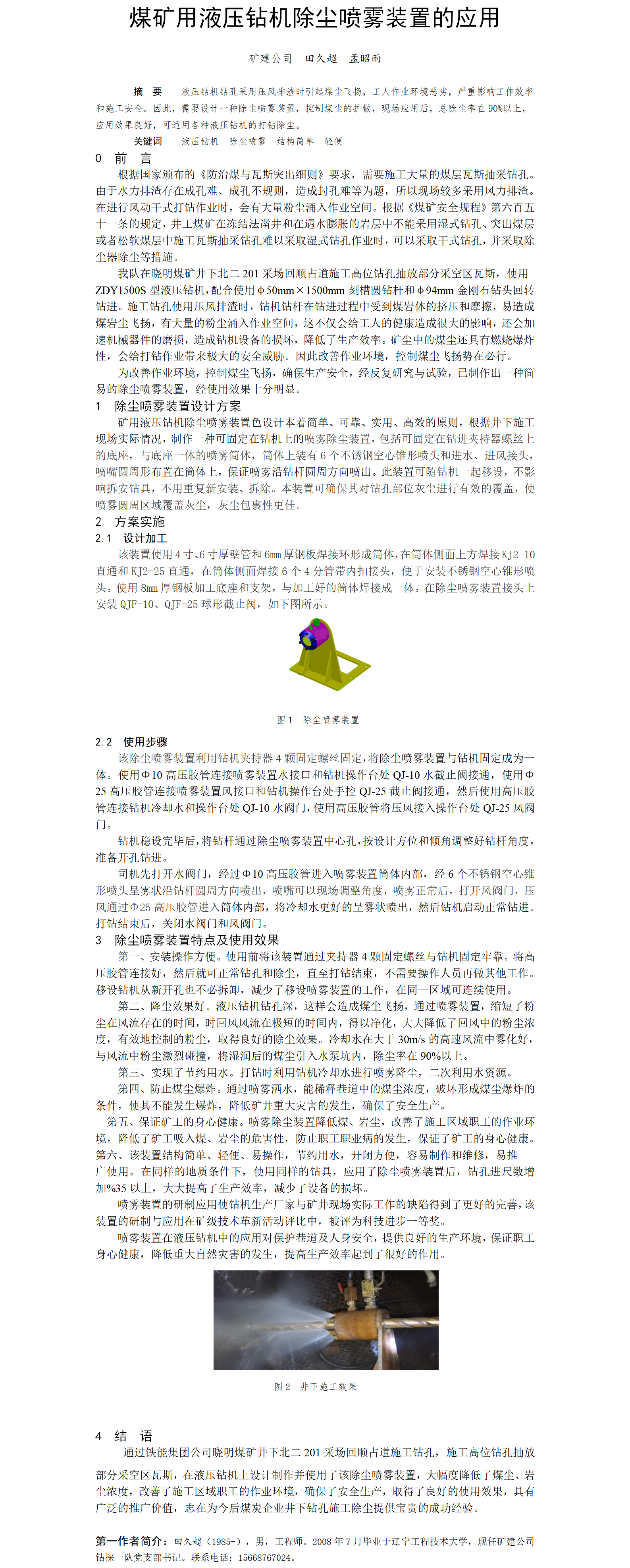 第60屆等級獎?wù)撐?--煤礦用液壓鉆機除塵噴霧裝置的應(yīng)用