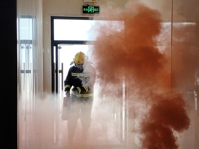 演練模擬總場(chǎng)調(diào)度室接到食堂職工報(bào)告,一樓廚房灶臺(tái)處發(fā)生火情,有大量煙霧飄出,火勢(shì)有蔓延可能。該場(chǎng)立即啟動(dòng)消防應(yīng)急(滅火)疏散預(yù)案,拉響消防應(yīng)急疏散警報(bào),并通知安全保衛(wèi)部組織應(yīng)急隊(duì)員攜帶滅火器具趕往食堂撲救。同時(shí),切斷食堂電源、關(guān)閉燃?xì)饪傞_(kāi)關(guān)。安保部人員根據(jù)火情發(fā)生點(diǎn),選擇安全的疏散路線,引導(dǎo)食堂及樓內(nèi)員工用濕毛巾掩住口鼻、彎腰快速奔向安全出口,撤離到辦公樓外安全區(qū)域,演練圓滿結(jié)束。