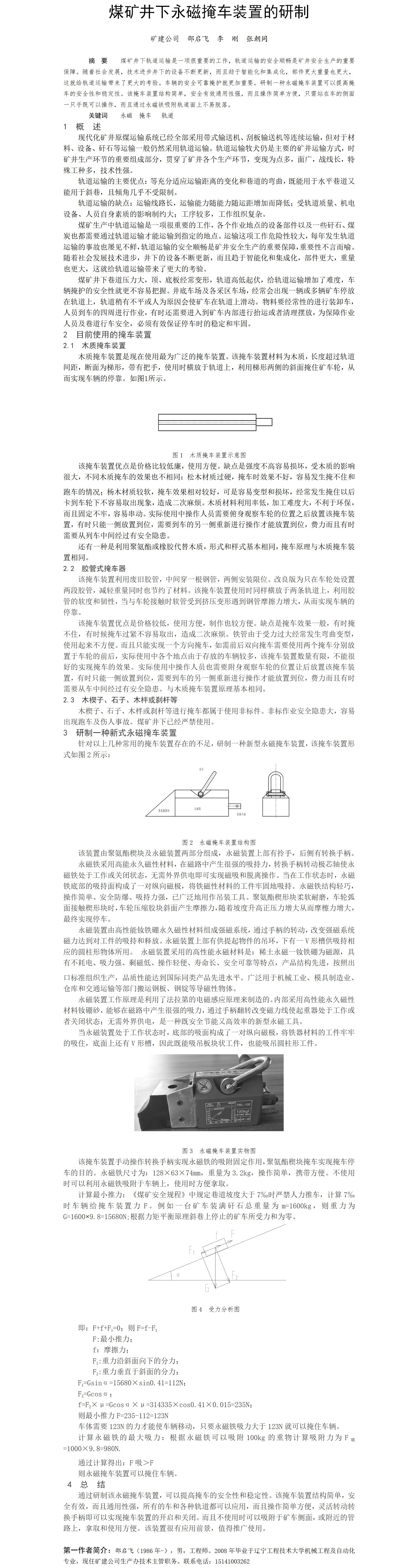 第60屆等級(jí)獎(jiǎng)?wù)撐?--煤礦井下永磁掩車裝置的研制