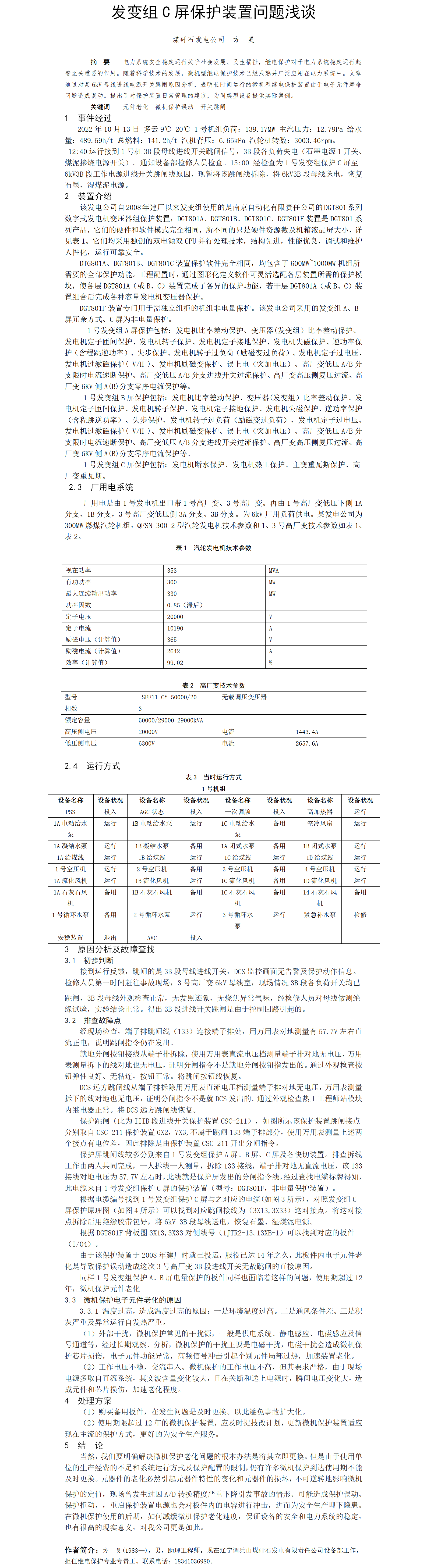 第60屆等級獎(jiǎng)?wù)撐?--發(fā)變組C屏保護(hù)裝置問題淺談