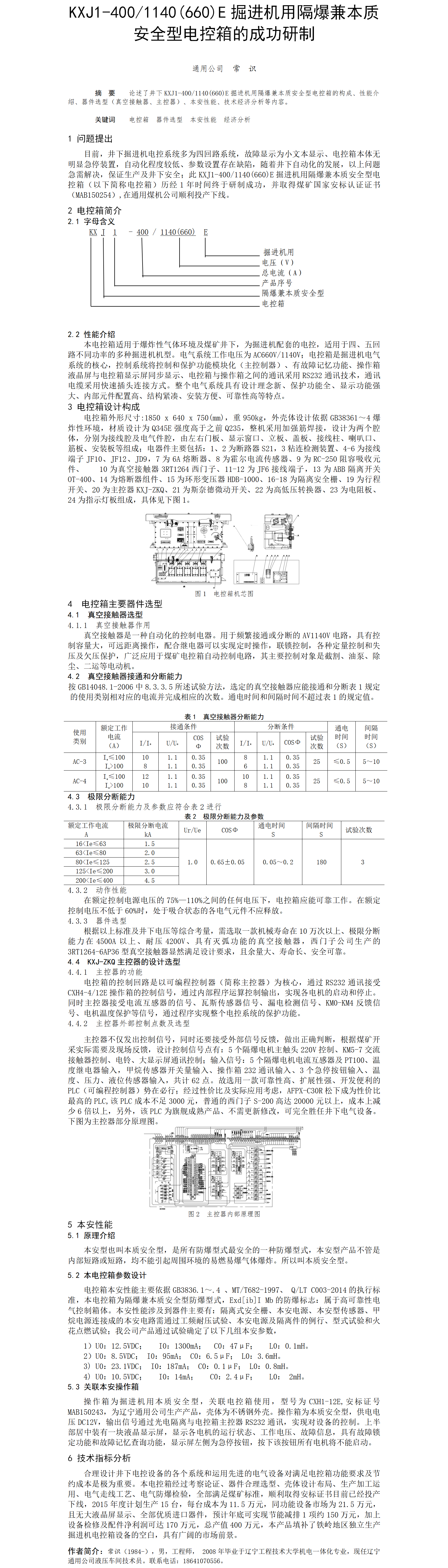 第60屆等級(jí)獎(jiǎng)?wù)撐?--KXJ1-4001140(660)E掘進(jìn)機(jī)用隔爆兼本質(zhì)安全型電控箱的成功研制