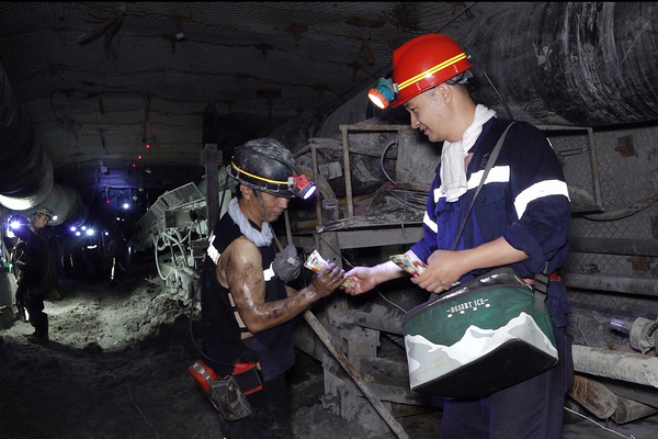 夏季高溫多雨,井下悶熱潮濕,職工出汗量大,對此,該礦聚焦職工生產(chǎn)生活需求,組織多個志愿者小組,深入井下南一東1號措施巷、東二1510、北一1602等作業(yè)地點,將雪糕送到每一位職工手中,為職工帶去陣陣清涼。